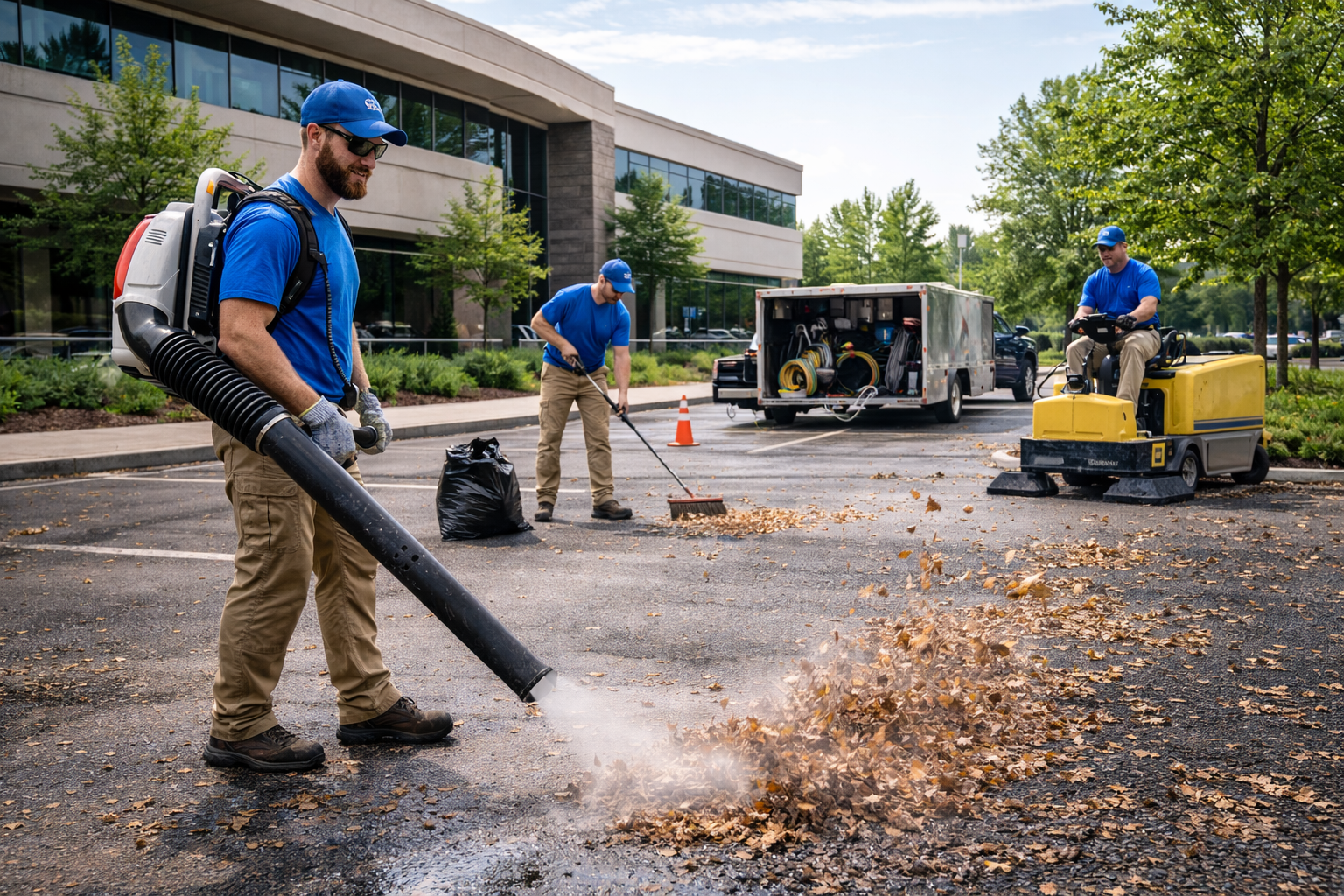 Commercial parking lot maintenance is the routine care and repair of parking areas to ensure safety, functionality, and a professional appearance. Key tasks typically include cleaning and debris removal, sealcoating and crack filling, striping and repainting lines, pothole repair, snow and ice management, and inspection of drainage and lighting.